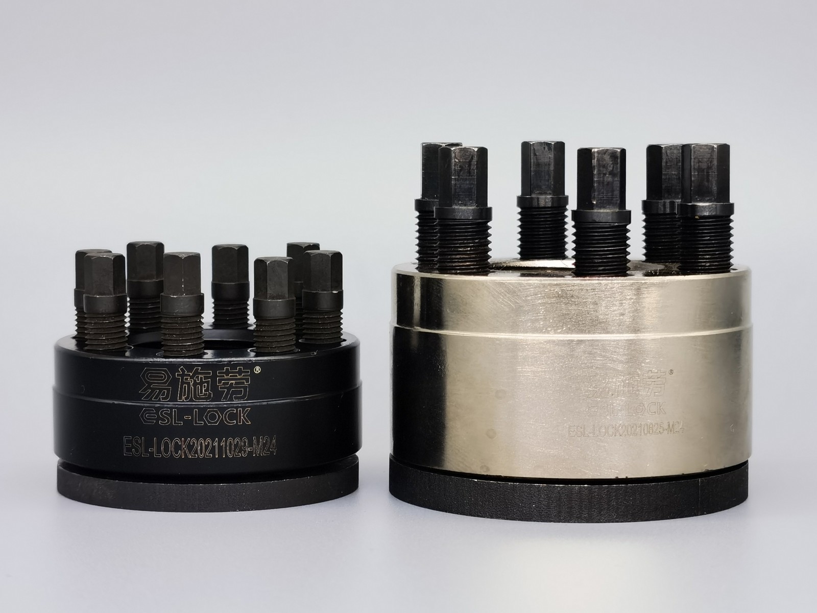 多顶堆超级螺母组件由圆螺母及数个顶堆螺钉和一个硬质平垫组成,可用来直接替代传统的标准六角螺母。将其拧在螺栓、螺柱或带螺纹的杆、轴上,主螺纹将螺栓/螺柱上的圆螺母安置于硬质平垫上。圆螺母就位后,螺栓/螺柱的实际紧固通过手动工具拧紧主螺纹四周的顶堆螺钉即可,主螺纹承受纯拉力。多顶推超级螺母能彻底解决松动问题,特别针对于大规格螺栓的螺纹松动安全联接,目前在风电、水电、核电、矿机、锅炉、石化装备及炼钢生产线的紧固联接装配,彻底解决维护问题!ESL-LOKC易施劳品牌超级螺栓防松产品,已获风能装机用户质量信赖,并被金风/明阳/远景用户长期采用!随着国产化进程的加速,越来越多的国产化替代开始选择史特牢精密制造合作!